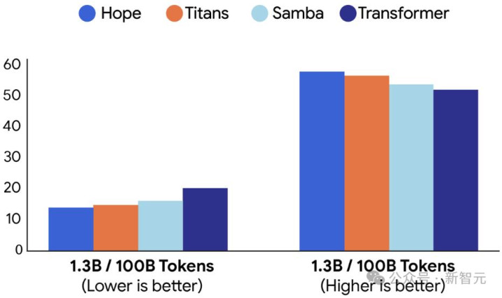 在常用的语言建模与常识推理任务上,Hope相较现代递归模型与标准Transformer模型展现出更低的困惑度与更高的准确率。