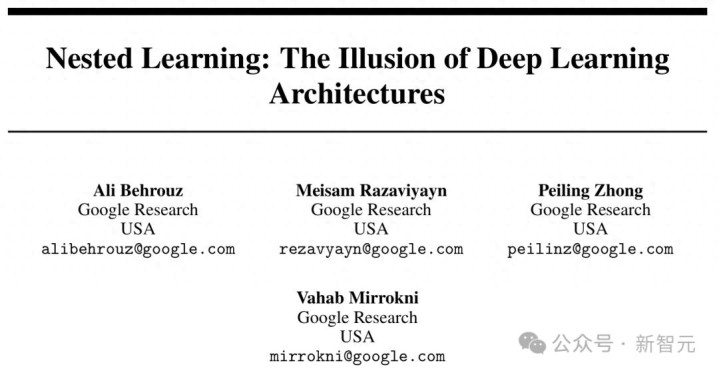 为破解这一难题,来自谷歌的研究人员提出了一种持续学习的全新范式——嵌套学习(Nested Learning),并且已被NeurIPS 2025接收。