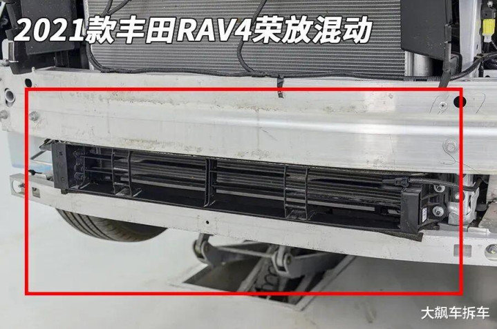 此外,老款RAV4配有主动式进气格栅,但新款车无论是防撞梁下方,还是杠皮上,都没有看到主动式进气格栅,显然也是被降本了。