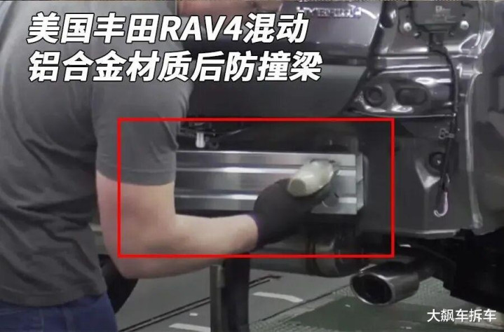 从网上的影像资料发现,北美版的丰田RAV4混动,后防撞梁居然也是铝合金材质!