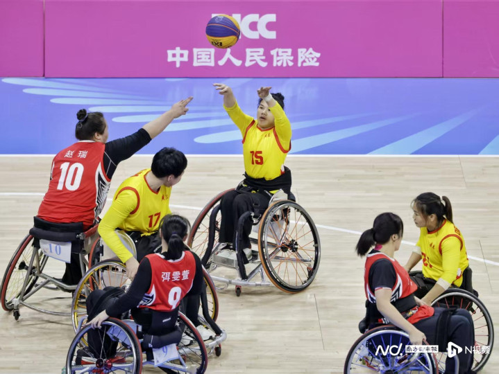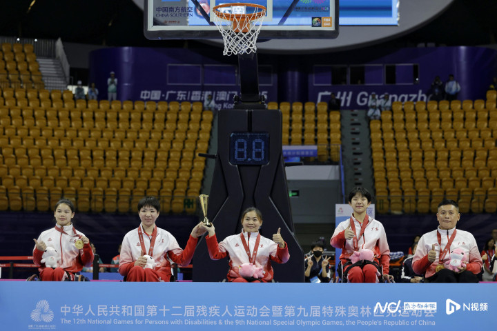 2025年12月8日下午,第十二届残疾人运动会暨第九届特殊奥林匹克运动会(残特奥会)女子三人篮球金牌赛在广州体育馆展开。