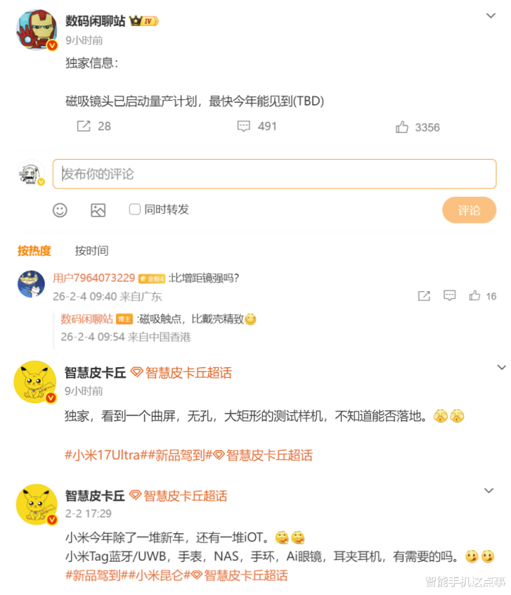 除了小米MIX 5的消息之外,关于小米生态发展方面也迎来了消息,其中就包括有博主透露磁吸镜头已启动量产,最快今年见。
